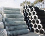 Chain Link Fence made of either stainless steel or PVC coated in, green blue, and other colors. Presently we deliver the chain link which is knuckled on both ends, but the other types available are knuckled at one end and barbed at the other end and barbed at both ends.